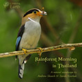 Our recording begins in the predawn, with frogs croaking from a streamside pool and the first birdsong carrying through the dense forest. Bulbuls, laughing thrushes, scimitar babblers, and the heavy wingbeats of hornbills all contribute to a tropical ambience.