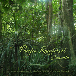 "This recording was made in a rainforest reserve on the edge of Loru village. The chief of the village had the vision to protect this primary forest intact, when so much of Vanuatu's lowland landscape has been cleared or modified. His son accompanied us, formally as a guide but in practice as a friendly host and invaluable companion. We spent ten days there, camping on the edge of the forest, enjoying a simple lifestyle that involved plucking fruit from trees and fishing in the nearby ocean. On occasions our field work can be arduous, but this wasn't one of them."